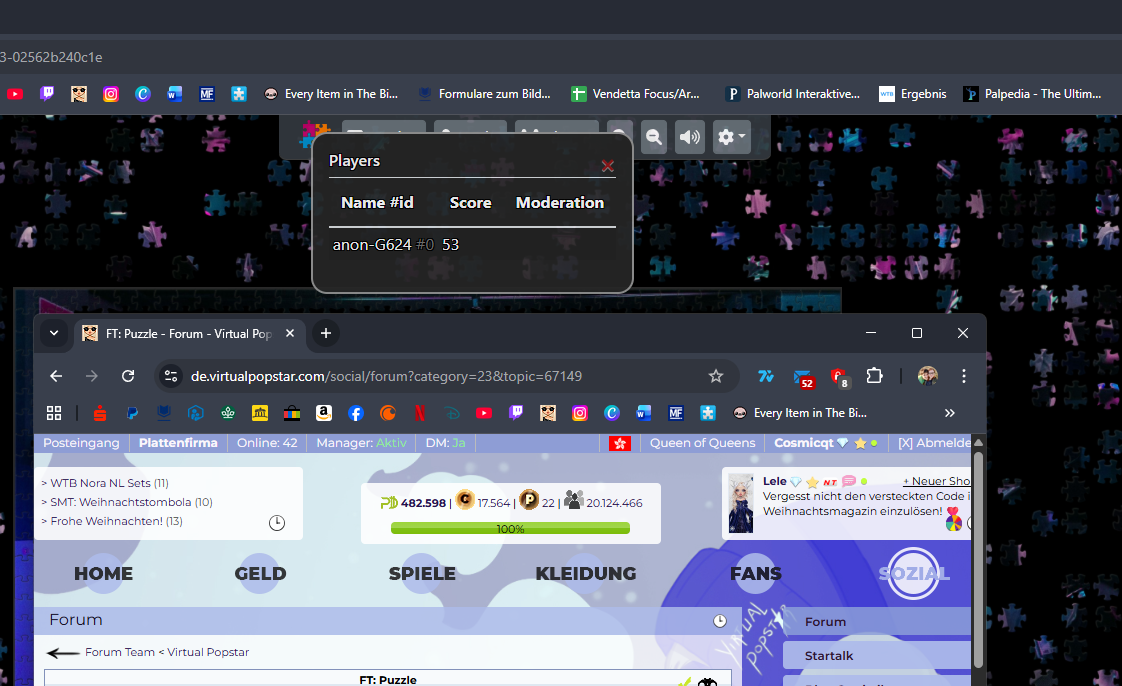 Denkt bitte daran im Puzzle den Usernamen zu wählen den ihr auch auf vp habt um mir die Arbeit zu erleichtern.