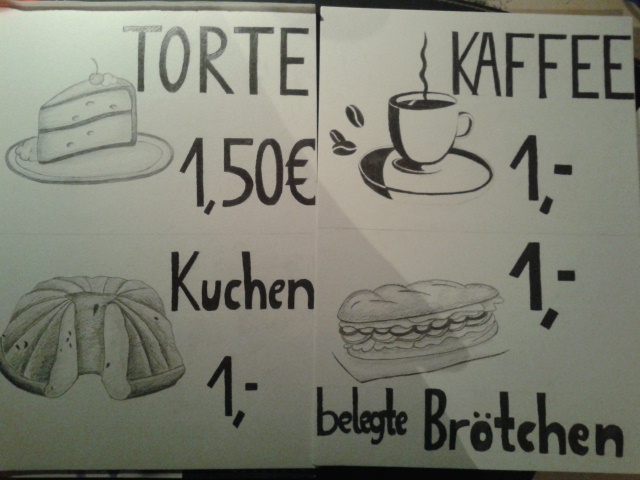Mullemausi Schrieb: Verkaufsschilder für Samstag, Tag der offenen Tür in meiner Schule. Hab ich gezeichnet.